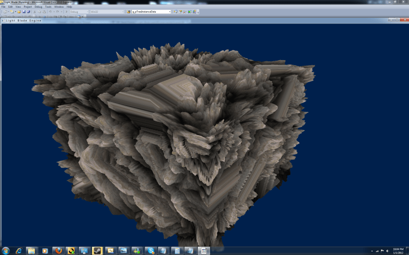 The first XMD mesh ever rendered. The XMD format (X-model) is a new proprietary model format I have created for the engine. XMD models require only 30% of the disk space .obj files use and are on average twice as fast to load. In addition, they provide exclusive compatibility with the engine, supporting features such as texture pools, internal version management, stride and generic compression, and 128-bit standard encryption.
